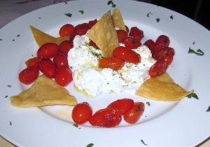 As an appetizer, we had the Burrata con Pomodorino which was a creamy mozz-ish cheese served with fresh made tortilla chips and brick-oven roasted cherry tomatoes. So good, especially eaten with the complimentary basket of bread that was dense and had a cake-like consistency.