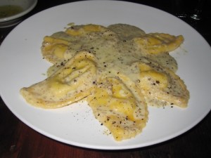 The wine list (or bible, if you will) can be a bit intimidating so if you find yourself lost, just ask your server for a recco. The Cannonau “Nero Sardo” ($32) is a versatile red I’ve gone back to again and again – a very reliable bottle. The Insalate di Endivia ($10) is a light option with bold flavors (mmm gorgonzola) and I’ve also had the Mussels which may have been a special (not on the online menu) but were definitely a good sized portion and great for sharing. One item I may not EVER share? The Ravioli Tartufati ai Porcini ($17); savory sachets of pasta deliciousness with a creamy truffle sauce. Best Ravioli I’ve ever had, hands down. Go get your own! Just to note, the pumpkin ravioli which appears from time to time on the specials menu is good, but I prefer a thinner consistency; they were more like dumplings (but still very tasty).