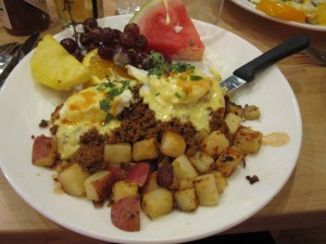 Let’s talk eats… obviously, I managed to get a BYOB brunch in there (2x). Yolk in South Loop (S Michigan Ave btwn E 11th St/E Roosevelt) was legit. We rolled up with bottles of Prosecco, ordered some orange juice to-go and hung out/drank in the courtyard while waiting for our table. Once we were called, we had some top notch egg dishes in skillets, omelets and sammies – everything costs under $10 and includes your choice of pancakes (a HUGE order), an English muffin or toast. Oh, and there’s NO CHARGE for Egg Beaters or whites. Kick ass deal. This girl LOVES it.