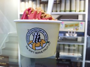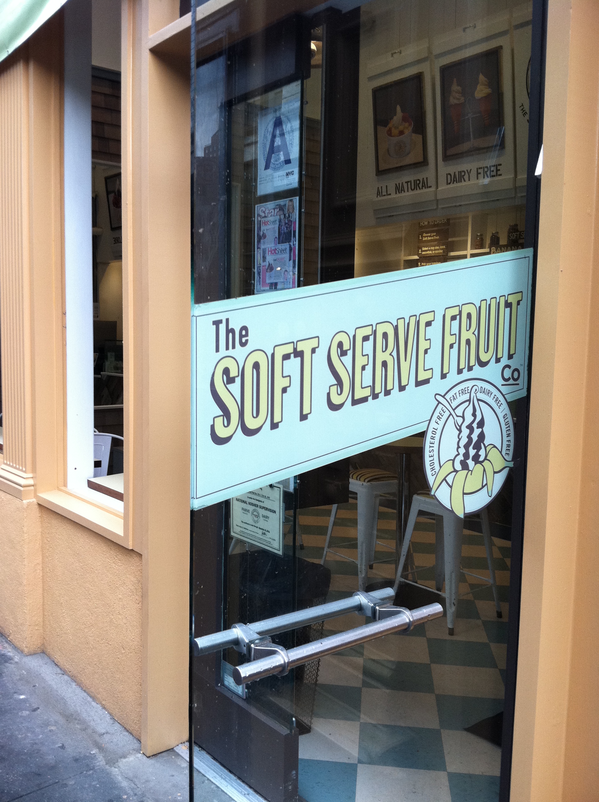 In this summer’s heat, we’ve had no shortage of new frosty food and drink options – in fact, the sheer number of choices could bring on an intense brain freeze when trying to make a decision. With players like Taiwanese-style Shaved Ice and New Orleans-inspired SnoBalls, a simple frozen yogurt (fro-yo, if you will) just hasn’t been cutting it for me. But recently I have been craving soft serve, minus some of the terrible artificial flavors that taste, well, unnatural. So naturally, when I heard about the new soft serve kid on the block (literally, it’s on my office’s block – 17th btwn Union Sq/5th Ave) that boasts natural fruit flavors, I decided to give The Soft Serve Fruit Company a whirl.