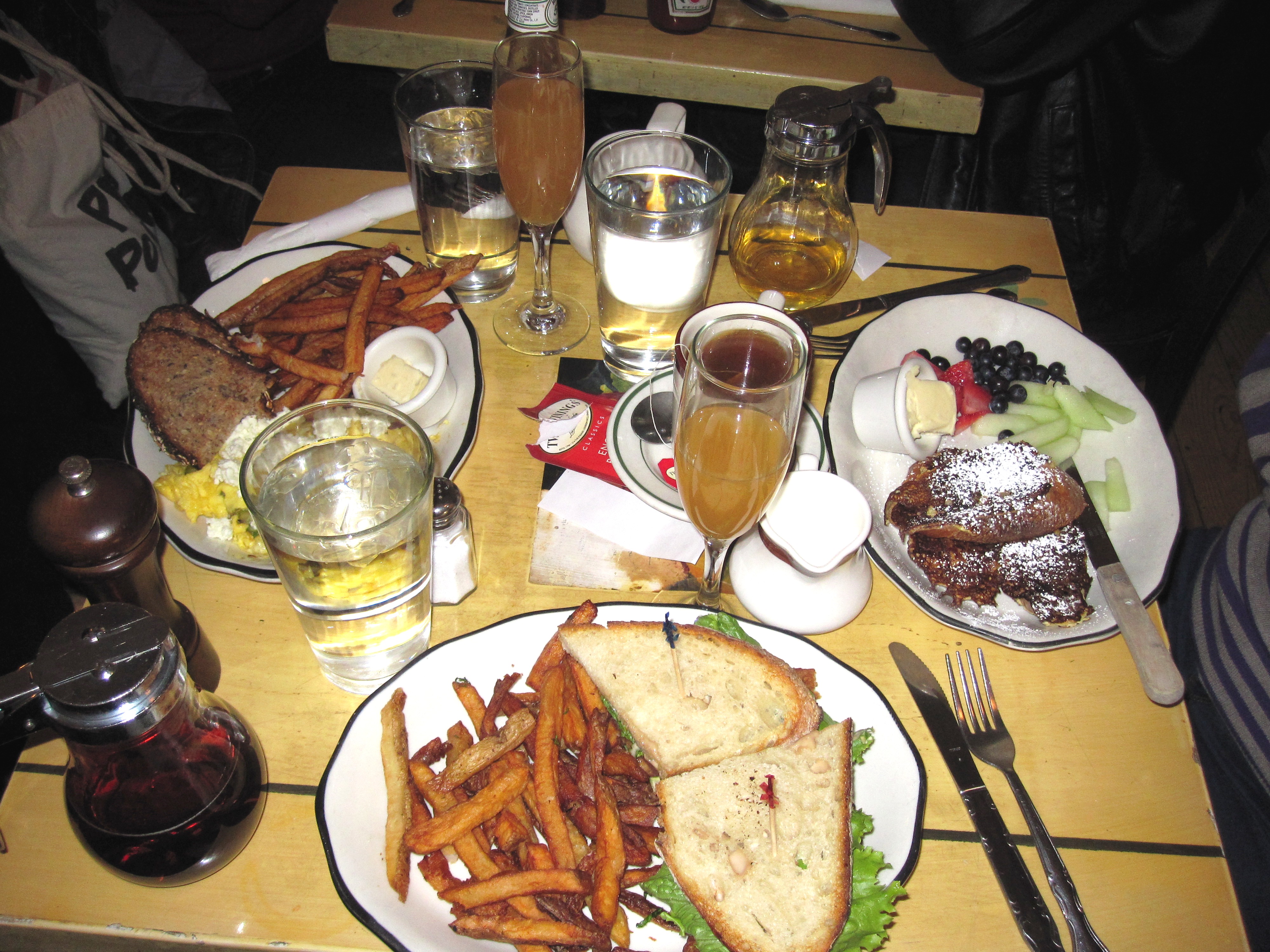 1) Essex (LES: Essex/Rivington) – for $22.95 you get at least 3 included brunch drinks (bloodies, mimosas, screwdrivers). You can make a reservation, big plus. Food/vibe is GREAT – it truly is the quintessential brunch spot. Menu is here (My fave dish is the Mexican Matzo Brei – YUM). Know before you go: Brunch is cash only!