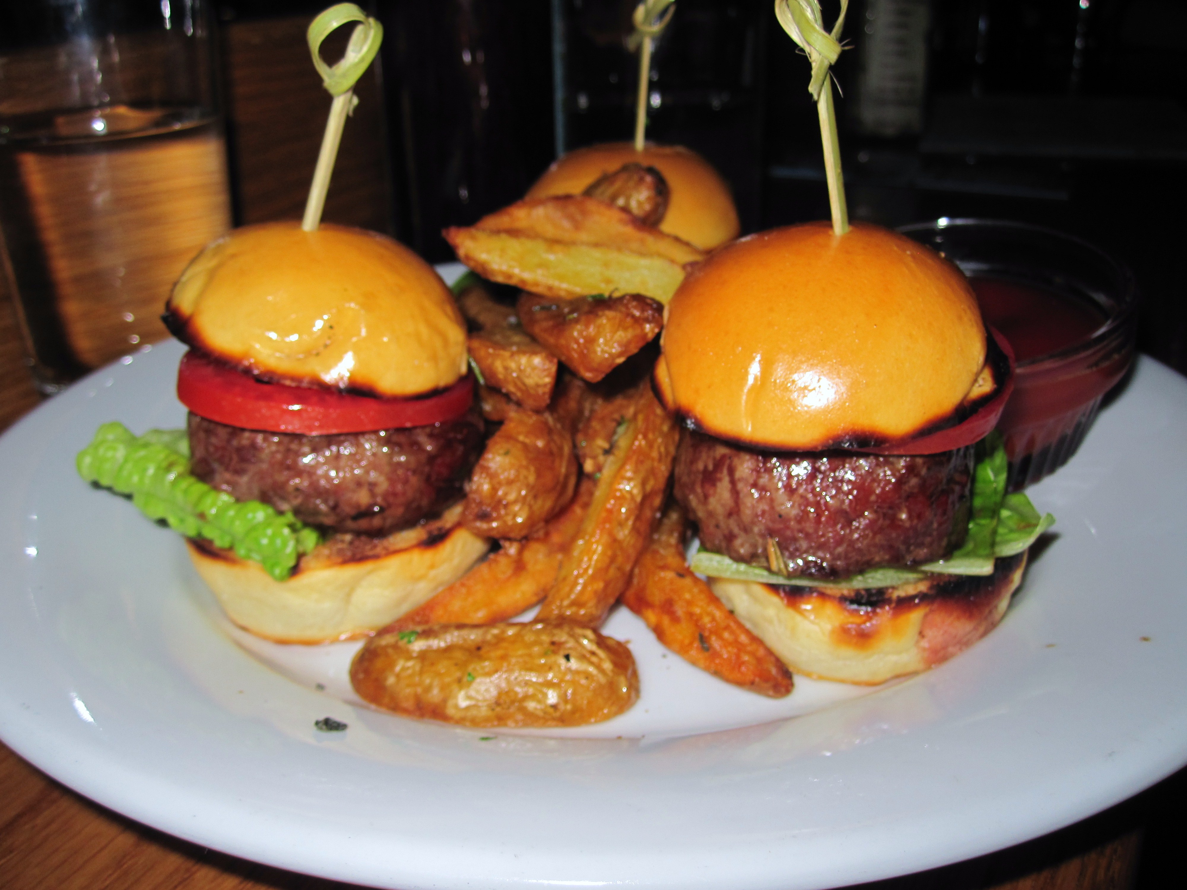 Element 2: Eats – If you’ve got a smaller menu that’s built to be paired with delicious, small-batch wines, chances are you’ve made sure your offerings are pretty damn tasty. I’ve consistently had solid food ranging from their crispy flatbread pizzas, to the awesomely shareable hummus plate. Recently tried the Roasted Beet Salad ($10) which to my surprise (and eventual delight) was deconstructed and plated in a linear fashion. The sliders ($14) were also a crowd pleaser, though as a friend pointed out, eating in the dark is not the ideal so maybe show up a bit early to eat before the lights dim and the music begins.