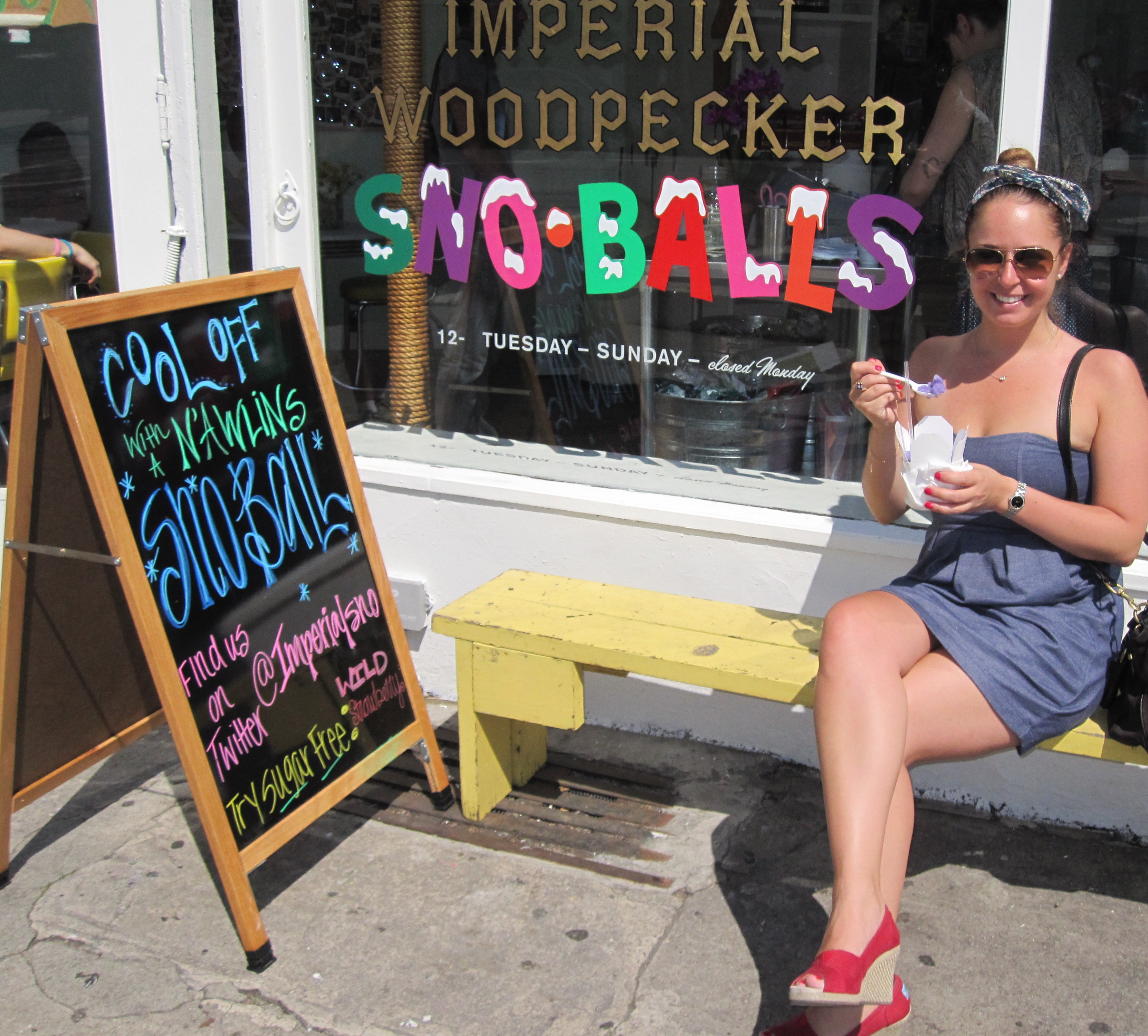 Forget snowball fighting; this summer’s all about sno-ball loving – thanks to the new West Village (7th Ave South @ Charles St) hotspot, Imperial Woodpecker Sno-Balls. The name’s quite a mouthful and it’s only fitting – these icy treats are a mouthful of deliciousness. This Nawlins import is a unique treat that puts its all-too-average italian ice and snow-cone cousins to shame.